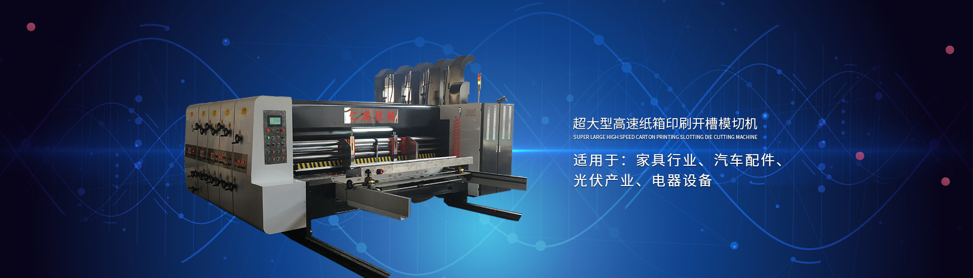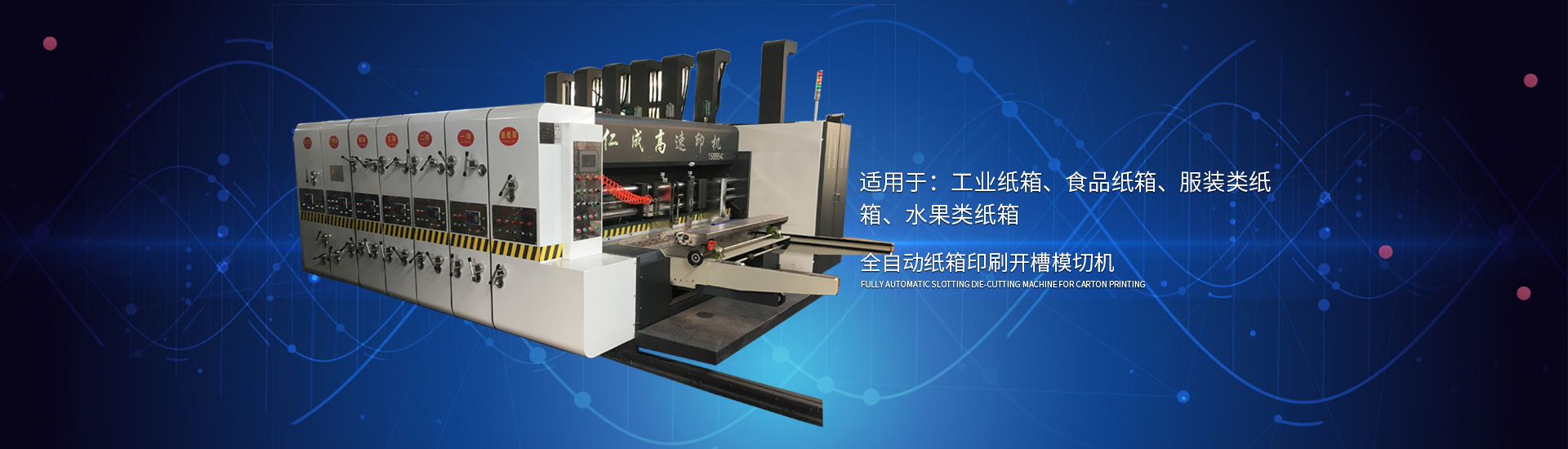 主要產(chǎn)品: 紙箱印刷開槽機(jī), 高速印刷開槽模切機(jī),自動插格機(jī),釘箱機(jī),粘箱機(jī),仁成包裝機(jī)械,紙箱機(jī)械